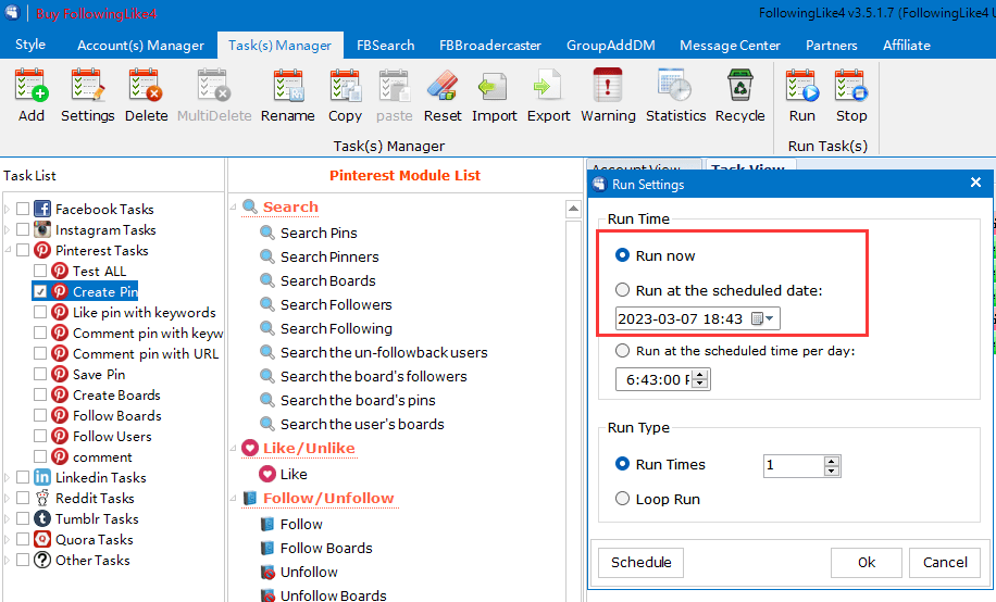The answer is yes! FollowingLike, which is an all in one social media markting program, has everything I mentioned above. It can meet all your imagination of a Pinterest Automation.