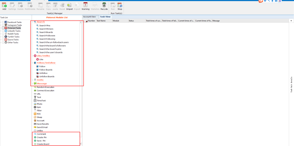 Is there a tool that can help us search pins, users, auto like, comment, follow, create pins , and save?